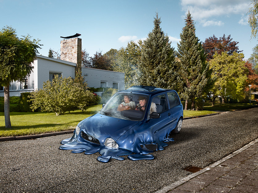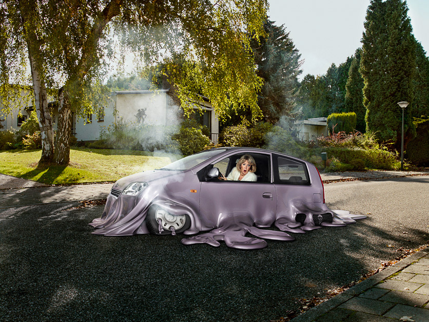 All the melted parts of the cars were created in 3D, the cars were shot in a studio.